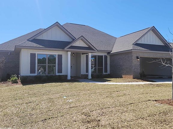 The Middleton floor plan by Truland Homes in Fairhope's Truland Subdivision, The Tracery. Every inch of this home says spacious, bright, light and open to detail; from the engineered hardwood flooring to the large windows, the walk-in closets to the over-sized pantry, the energy efficient mechanicals to the cozy living room fireplace, this home is destined to be your perfect Fairhope home. Enter through a fiber glass door with a Schlage combo lock and brush nickel knob on front door. A Ring doorbell adds another security feature. Open floor plan great for entertaining your guest from the kitchen or keep a watch of the kids. The crown molding in the home and wainscoting in the dinning room gives a distinguished feel. The Middleton is a split floor plan that gives the primary bedroom sanctuary additional privacy. Large primary bedroom with a vaulted ceiling. A primary bath with double vanity, tile shower, garden tub and walk- in closet. A spacious 2 car garage that provides the needed space for vehicles or toys. Right outside your garage you have a mud bench for you or the kids to drop your items. Spacious laundry with Mosaic tile and walk- in pantry. Kitchen has Samsung appliances, frost white quartz, elegant crafted white cabinets, stainless steel apron front 50/50 sink and Delta faucet. The Great room is great for entertaining with a gas fireplace as a center piece. A covered back porch the perfect spot to enjoy your back yard view. Gold Fortified Certification, along with the comfort of a PWSC Builders Home Warranty. Fairhope Single Tax land. Estimated completion end of April 2023.