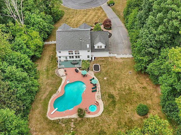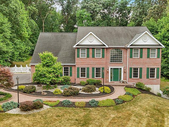 Welcome home to this spacious French Creek Estates community 4-bedroom, 2-story gem nestled on a tranquil 2-acre lot. Located on a quiet cul-de-sac, this meticulously cared-for home features numerous upgrades. As you step inside, you'll be greeted by high, vaulted ceilings that create an open and airy feel. The appointed office boasts hardwood floors, while the sizable dining room showcases custom Brazilian wood flooring and elegant crown and chair rail moldings. The professionally upgraded staircase includes stained treads, painted risers, custom posts, and wrought iron balusters. The gourmet kitchen is a chef's delight, featuring tile flooring, a tile backsplash, granite countertops, and high-end stainless steel appliances. The first floor also offers a grand family room with high ceilings, a wall of windows, a gas fireplace, and a ceiling fan. Adjacent to the family room is a bonus room perfect for various uses such as a 5th bedroom. Upstairs, the hardwood hallway leads to the oversized primary suite with vaulted ceilings, hardwood flooring, and a primary bath with a Jacuzzi whirlpool. No need to worry about closet space with two separate closets, one of which features a laundry chute. The remaining three large bedrooms and a full bath with granite countertops complete the second floor. The finished lower level is ideal for gatherings, featuring a built-in sound system and ample storage space. A convenient walkout door leads to the side yard. The backyard is a summertime paradise with a concrete heated saltwater pool, a hot tub, a fire pit, and a gorgeous patio with a motorized awning. Additional features include a full house backup generator, a heating/AC unit replaced in 2018, a new 50-year roof installed in 2014, and gutter guards. Situated in the Daniel Boone School District and just eight miles from the PA Turnpike, this home offers both tranquility and convenience. Schedule your appointment today to see this beautiful home!