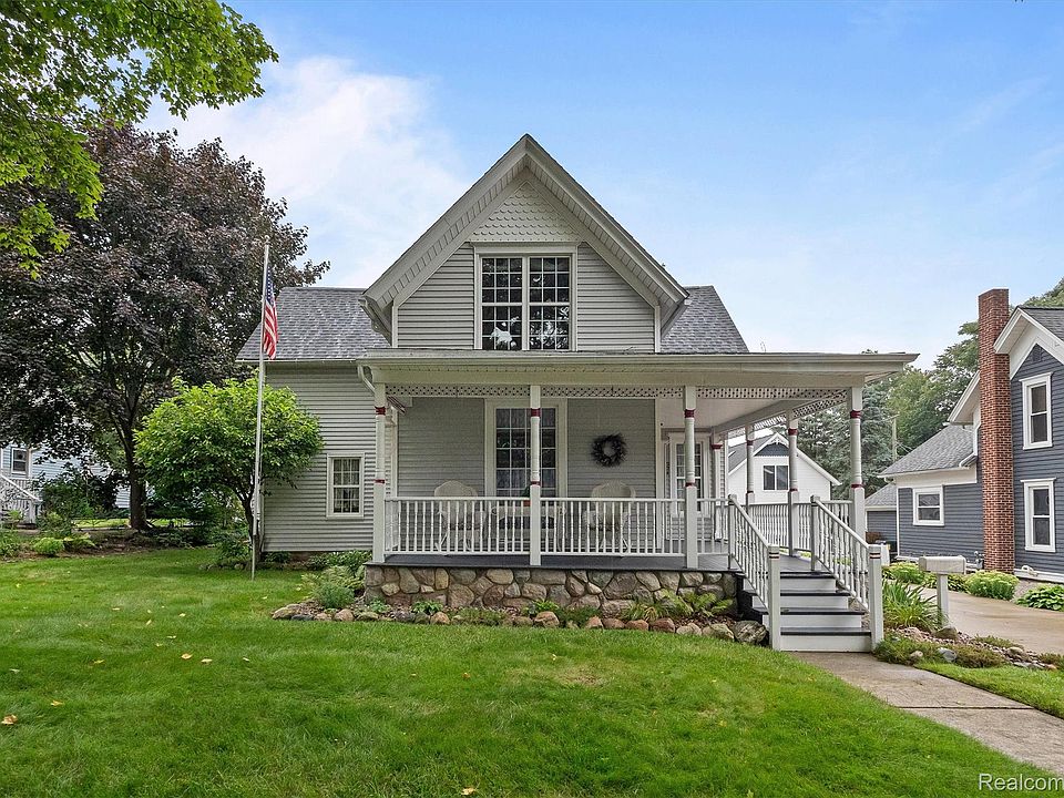 OPEN HOUSE CANCELLED! Welcome to this stunning, meticulously maintained 4-bedroom, 2-bathroom home that combines timeless charm with thoughtful upgrades. From the moment you arrive, you'll be greeted by exceptional curb appeal, featuring beautiful landscaping and a classic covered front porch that invites you to sit and relax. Inside, the home offers a warm, inviting layout filled with abundant natural light. The living room boasts a charming bay window with a built-in window seat, offering a cozy nook. Adjacent is the office complete with built-in bookshelves and cabinetry, perfect for remote work, study, or creative pursuits. The kitchen has been tastefully renovated with white shaker cabinets, a modern tile backsplash, and ample countertop space—ideal for both cooking and entertaining. The formal dining room showcases original hardwood floors, adding warmth and character to the home's main level. All bedrooms are generously sized, providing comfortable accommodations for family and guests. Both bathrooms are well-appointed with updated fixtures and finishes. Major mechanical upgrades have been completed for your peace of mind, including a new furnace and central air conditioning (2024) and a new roof (2017), as well as fresh interior paint and new carpet throughout (2025). The outdoor living space is just as impressive, with a spacious deck overlooking a fully fenced backyard—perfect for relaxing, gardening, or entertaining. The detached 2-car garage features 220-volt electrical service and a large loft for additional storage or a potential workshop, gym, mancave/she shed, the skies the limit, making this added space ideal for everyone. Conveniently located near local shopping, dining, schools, and parks, this home has so much to offer. Don’t miss your chance to make it yours—schedule your private showing today!