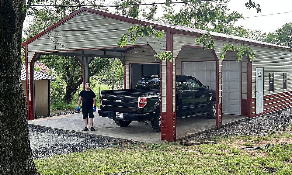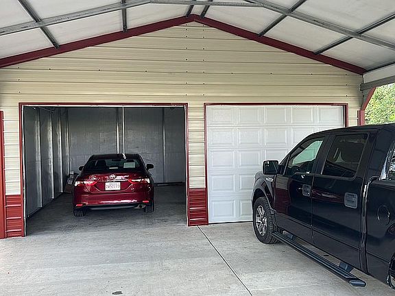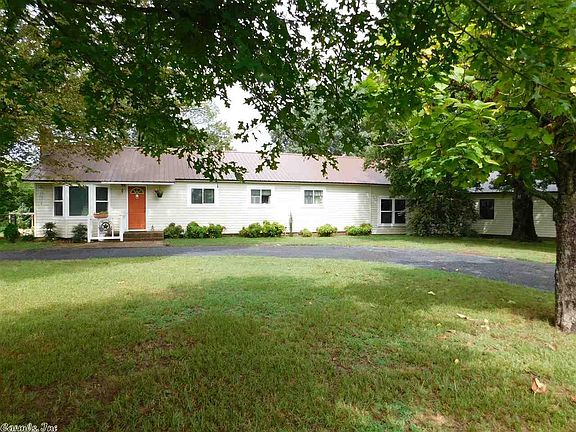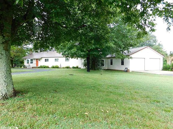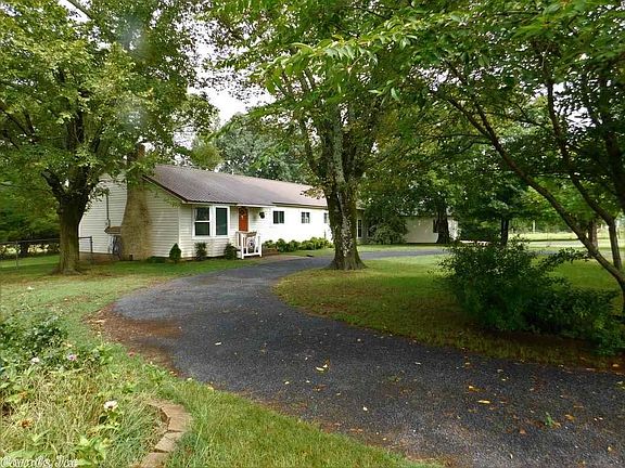 A neat circle drive & big shade trees provide ample shade for this spacious (over 2,000 sq ft) home with Sunroom, Metal roof, attached garage and outbuildings. Living Room features a large bay window and a site built woodburning fireplace. The large farmhouse kitchen has a center island w/granite countertop, stainless steel dishwasher and refrigerator plus lots of cabinets for the cook to enjoy. Dining Room/office opens to the back patio. Split arrangement 3bdr/2baths. Large master suite has walk in closet. Major upgrades in 2022/2023 include new Luxury Vinyl Flooring in the dining room/office, and new porcelain tile in the Kitchen, Hall and Sunroom/TV room. Sheetrock has been professionally replaced in the ceiling of the Kitchen, Laundry Room, Dining Room, Common Area and Guest Bath with a wall and lockable door including two new windows added to wall leading from kitchen to office and the outside wall, and a New French Door opening to the deck. We use this as an aviary but could be an office, dining room, extra guest bedroom, or whatever you choose. Has private outside entry. A new high SEER Rated Carrier HVAC system was added in 2022 with additional insulation added in the attic for high efficiency, lowering heating and cooling costs. A 24kw Generac whole home generator powers everything in case of power outage. This includes the detached shop/garage. Wired with ethernet for security cameras and cable with multiple security cameras covering inside and outside added in 2021, along with other hidden security features. Security cameras would not convey. Additional major improvements in 2023 include a Garage/Shop/Carport with 10-foot walls. Garage portion is 600 sq. ft and insulated with an 18,000 btu high efficiency mini split HVAC system for heating and cooling and garage door openers. With existing parking this gives a total under roof parking for 7 vehicles. Additionally, an 8 x 10 ft. EF-5 rated tornado shelter that protects up to 16 people has been added and has a lockable security door for safety and storage. There are multiple fruit trees including Apple, Pear, Plum, Fig, and others planted in 2022/23 along with several Japanese Maples, Smoke Trees. blackberries, figs, and multiple blueberry plants also producing. The cement porch has been upgraded with natural stone and natural stone steps have been added for convenience to the lower (North) side of the yard. The French drain that crosses under the garage drive has also been upgraded with natural stone.
