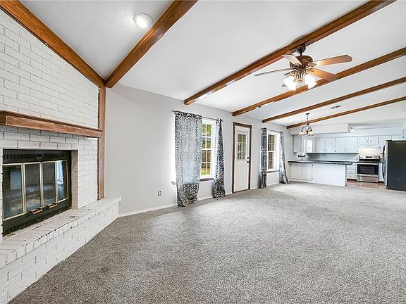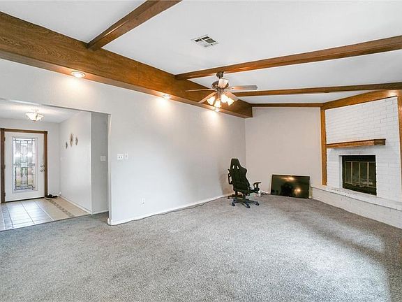 Welcome to 224 Quail Run N. Walk into an open living room and kitchen area. Great for entertaining! Enjoy the wood burning fireplace and wood beam ceilings. The kitchen includes white cabinets, island overhang for extra seating, stainless steel appliances. The bedrooms are carpeted and good size. Great closet space. The spacious back yard includes a storm shelter and storage building. Set up your viewing appointment today!