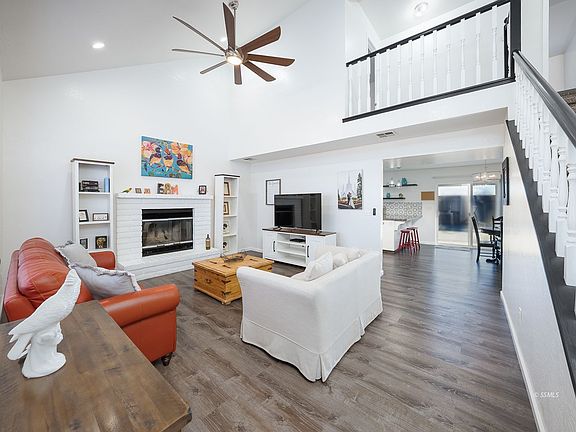 Beautiful 4 bed, 3 bath pool home w/ dual cooling & paid solar available for rent! Welcoming living room beyond front entry w/ vaulted ceiling & brick fireplace. The kitchen has been tastefully updated w/ granite counters w/ Carrara marble backsplash, stainless steel appliances, plenty of storage and a great walk-in pantry. Back patio slider access from the dining. 2 primary suites in the home - 1 conveniently located on each level of the home. The bedrooms are all comfortably sized and provide lighted ceiling fans and ample closet space. The bathrooms have each been updated as well! The home also provides great indoor laundry w/ laundry chute & a bonus room on the main level. Stunning backyard oasis to enjoy - generous swimming pool, covered patio space, outdoor shower & detached bath, established landscaping and RV/boat parking. Tenant to pay for utilities! Home owner will pay for pool service.