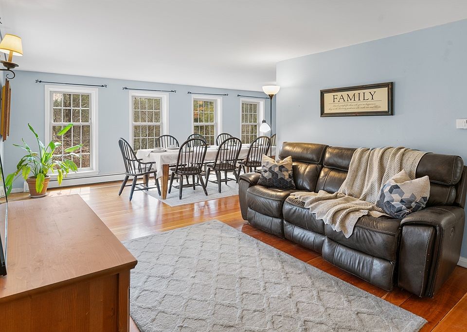 Welcome to this charming Colonial Saltbox in Weare, NH, nestled on a 2.05-acre lot. Inside, you will find cherry hardwood floors that add warmth to the open living spaces. This home offers 4 spacious bedrooms, 3 bathrooms, and an office on the first floor. The three-season porch is a perfect spot to enjoy the outdoors in spring, summer, and fall. The living room features a wood stove, offering warmth during the cooler months. Step outside to your private oasis with a saltwater swimming pool, ideal for swimming, relaxing, or entertaining. Combining classic Colonial style with modern comforts, this home provides a welcoming and functional living space. Don't miss the chance to experience the peaceful lifestyle this property offers!