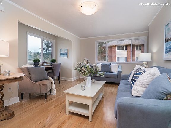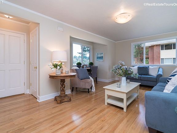 Build a peaceful life while staying connected; beautiful condo w/vintage charm & solid construction. Features hardwood floors in living, dining & bedroom. Crown molding & large windows look out on the lake & park like grounds. The efficient galley kitchen in this open layout keeps you close to guests while entertaining. Drink coffee or barbecue on large deck. Avoid freeways w/close proximity to downtown Portland, colleges & hospitals.