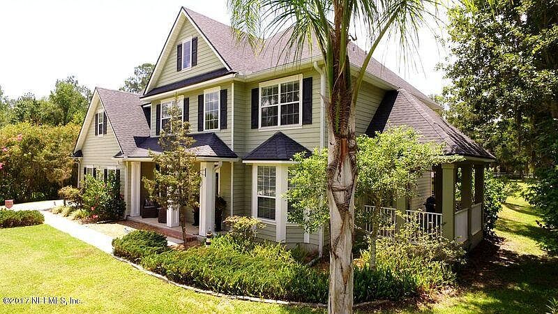 Wonderful home is seeking horse, boat and sunset lovers for magical country lifestyle right at the river. Imagine the fun for your family and friends when they have the opportunity to boat, swim, fish from the community day dock, and horseback ride, hike or bike over the community’s 115 acres of pure Equestrian pleasure in the same visit. Other interests? Outlet shopping is only 10 minutes from your doorstep and all of wonderful, historical St. Augustine with its amazing dining beckons close by as well. Zoned for tremendous St. Johns County schools. The home is generously situated on 3.37 acres and offers front porch views of its cross-fenced paddocks, barn and stables through to preserve while the extra UV protection screened pool deck offers a beautiful lawn view across to the St. Johns River. If you've never experienced that sunset, it's not to be missed! The home is both elegant and homey, with the popular open concept kitchen, dining and large family room. Easy care, beautiful engineered wood floors throughout the living area with carpet in the bedrooms. Office and formal salon on main level, separate, air-conditioned laundry room off the garage. Cozy side porch as well for grilling and morning coffee and listening to your horses play across the street. Visit soon and see all the other features too numerous to list!