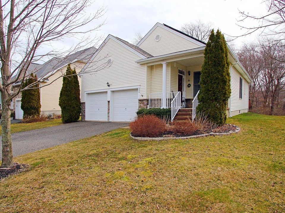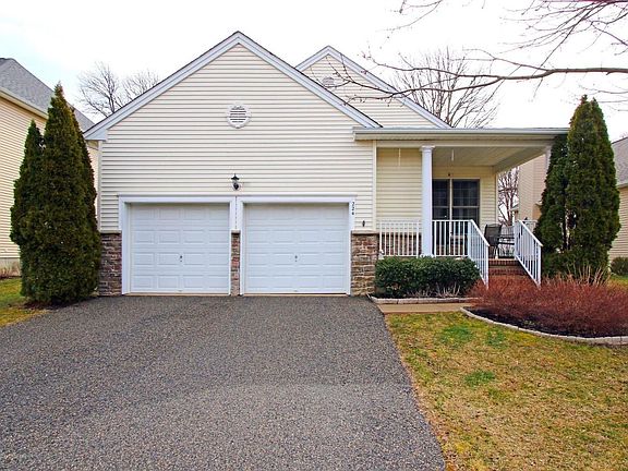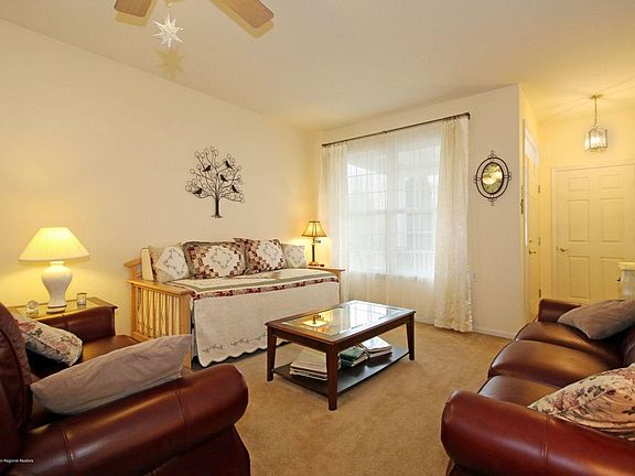 Great Azalea model in Rolling Meadows backing up to the woods! This home has been lovingly cared for. Kitchen with quartz CT; wood laminate floor and instant hot water . Eat in kitchen with sliders to private deck. Cozy family room. Master bedroom with walk in closet, tray ceiling and full bath. Two car garage, full basement, whole house generator. This home has economical solar panels. Only 88 per month and only 14 yrs. left on the lease. Move in just in time to enjoy all the wonderful amenities this resort-like community offers.