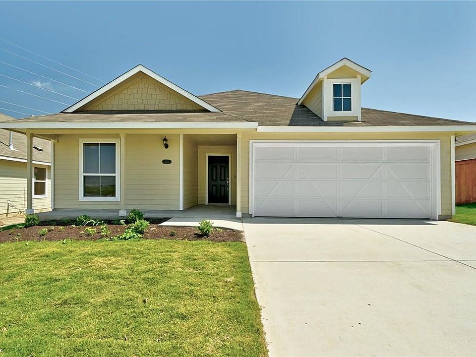 This lovely home was built in 2022 and is located across the street from the amenity center. It's like having a pool in your backyard! The open, eat-in kitchen features granite counters, painted cabinets and stainless steel appliances. Easy care tile flooring throughout all the main areas with carpet in the bedrooms only. Included in the lease are a refrigerator, blinds, garage door opener and sprinkler system. You will also appreciate the level yard and extra large covered patio. Great proximity to an in-community elementary school, open areas, amenities, major thoroughfares and shopping.
