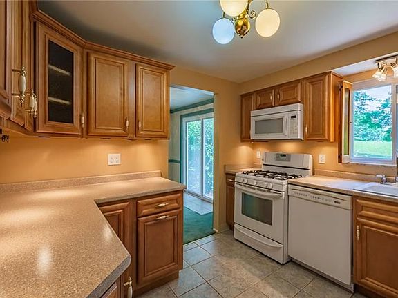 Situated on a cozy cul de sac, this split entry says "welcome home" the minute you step in! A beautifully updated kitchen with maple cabinetry, neutral counters, under counter lighting is fully equipped with appliances including a gas range with convection oven, French door fridge, microwave and dishwasher. The Master has a completely updated bath with a handsome tiled shower to start your day! A newer Pella slider takes you out to a paver patio for relaxation as you look out to the vacant lot beyond the boundary. A roof top patio to the storage shed provides additional outdoor space. The lower level provides the laundry/utility room, powder room and a cozy game room with wood burning fireplace with wood burner that you will love when the weather turns! Hardwood floors under the main floor carpet...quality of the floors can be seen in the hall closet! Metal roof! Includes 1 year HSA home warranty!