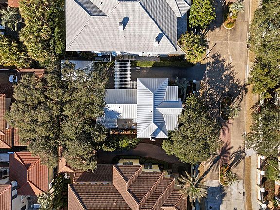 The outside offers approx. 750 sq ft of outdoor living space, paver drive with a pergola over the side door, a one-car garage, and a refreshing outdoor shower. The home is equipped with a sprinkler system utilizing city water, landscape lighting, and a natural gas grill. Notable features include two newer HVAC units, a tankless hot water heater, hurricane shutters, and a two-year-old metal roof.