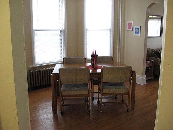 Spacious house with 6 bedrooms, 2 1/2 baths. Living and dining room with hardwood floors and a 55 flat screen TV! Updated kitchen (with breakfast bar) dishwasher, TWO refrigerators - even a chest freezer for the pizzas!. Each bedroom is secured with a lock - key given on move in day. There are TWO extra storage rooms. FREE laundry. Off street parking and on street parking. Walk 1 block to the bus. Tenant responsible for trash