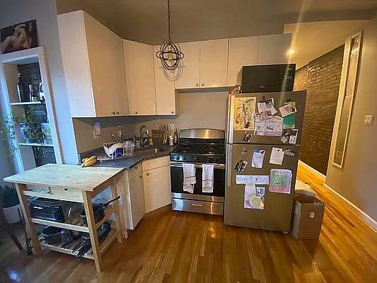 No fee Renovated 2 bedroom. 1 large room with closet. 1 smaller room with closet. Both have windows. Open concept living room. Modern kitchen appliances. Exposed brick. Heat and hot water included. Classic pre war building 5th floor walk up. Live in super. Great location! Contact me today! Isaac