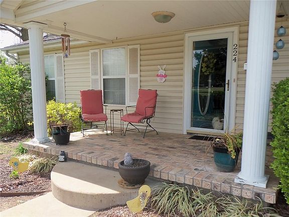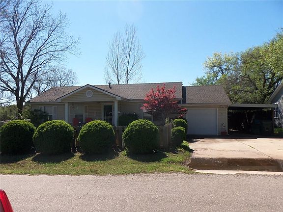 CUTE, CUTE, CUTE!! Neat porch with brick tile welcomes you to the front door & pretty yard. Corner lot with privacy fenced yard with nice deck across back of home, storm cellar and storage bldg. Open floor plan with spacious living area with corner gas FP, great kitchen w/granite countertops, island with built in range and all stainless steel appliances. Utility room has built in desk and large enough to be a small office. The bath has corner glass shower, whirlpool tub, dbl lavs w/granite and beautiful tile. You will not be disappointed looking at this one. Home was completely remodeled about 10 yrs ago and has been well maintained.