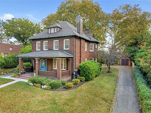 Location is unmatched at this stately all brick home just bursting with charm & perched on a lovely lot in vibrant Avalon Neighborhood where restaurants, shopping, craft breweries, local library & seasonal festivals are steps away. Exterior Spaces= a sprawling custom-built stone wall, pillared lamp posts, newly paved walkway, covered front porch, driveway w/ garage & awesome yard. Grand Foyer= original curved staircase w/ built-in bench & pocket doors. Stunning Living Spaces= original ornamental mantles, decorative fireplaces, high ceilings, smooth hardwoods, built-in cabinetry & more. Updated kitchen w/ excellent footprint & mud room leading to covered patio. 2nd FL= 4 generous bedrooms & full hallway bath. 3rd FL= easy walk-up staircase & 2 unfinished rooms. Lower Level= half bath plumbed for shower install, laundry zone & loads of extra space. Enjoy walking treelined streets to listen to live music or meet friends. Commuting is a dream. Minutes to highways, airport & everything PGH!