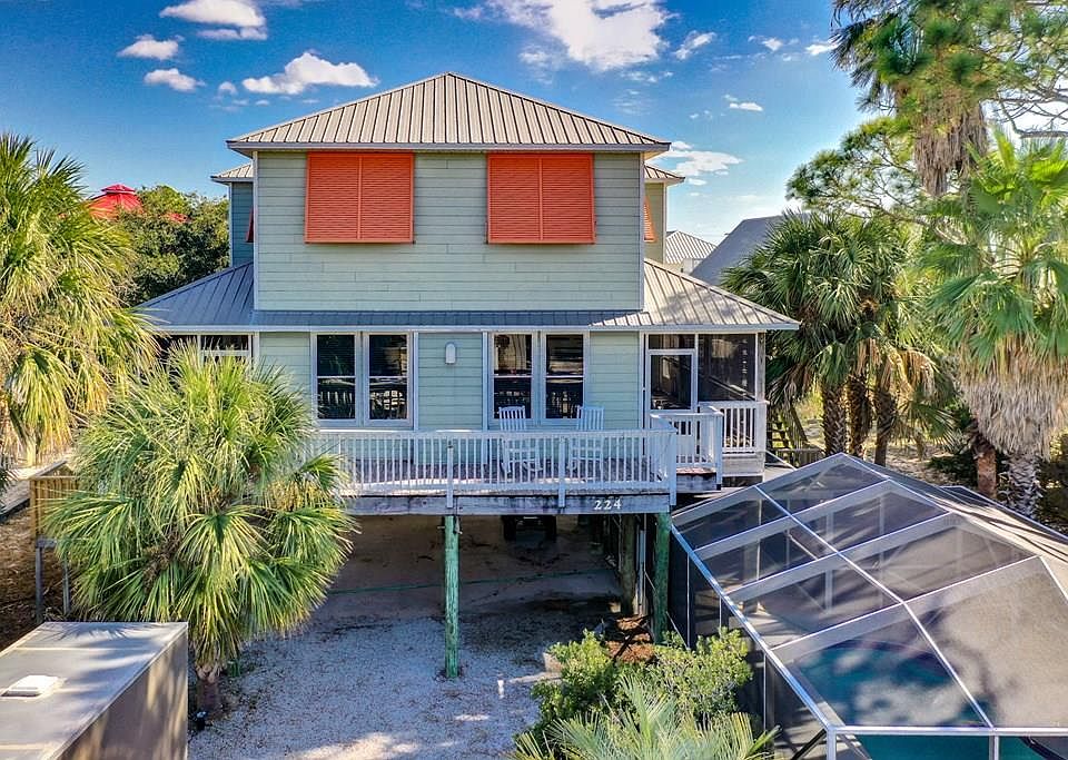Charming 3BR/2.5BA coastal cottage w/ loft 100 steps to the beach! This home has all the perfect features to make it a perfect rental or your beach vacation home. The home has an open concept floor plan with vaulted ceilings, galley kitchen, loft, separate dining area, and half bath. The master bedroom, master bath, and laundry are also located on the first level. Cute & Comfortable furnishings throughout the home! The second level has a loft area, two bedrooms with a "jack and jill" bathroom. All the bedrooms and loft have carpet, the living room, dining area, master bath are tiled. There is an enclosed outdoor shower, spacious storage room and 6 parking places. The pool has a screened enclosure with spacious area for lounge chairs. There is a wide deck on the front with a screen porch and open deck too!