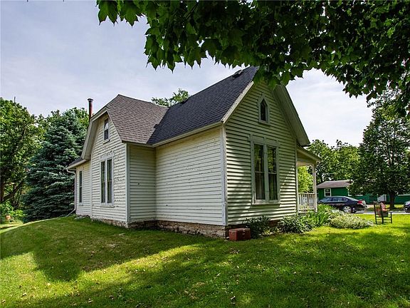 Cozy home on large corner lot with beautiful flowers throughout yard. Hardwood floors in much of home. Living room has beautiful white bookshelves across wall, lots of light comes in dining room windows and kitchen has tile floors and nice white cabinets. Full bedroom and full bath on main level. There is a loft style bedroom upstairs with plenty of room. Enclosed porch off kitchen leads to basement. Older barn style shed in back. Sf. Ft. is just main level, loft is not included in sq. ft.