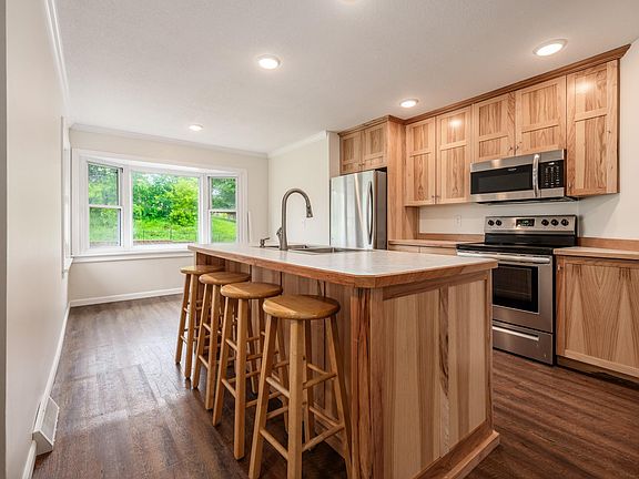 Versatile opportunity is presented in this 3+ bedroom, 2 bath home, centrally located in Grand Rapids. Fresh paint throughout gives a clean slate and move-in ready impression. The main level features an updated kitchen with center island and dining area, spacious living room with fireplace, and three bedrooms to share a 0.75 bath. In the lower floor, utilizing a small kitchenette, family room with second fireplace, bedroom space with closet, and additional 0.75 bath, you’ll find potential to make it an efficiency apartment for rental income. Or, simply embrace it as a space for movie or game nights with a wet-bar. Completing the walkout is a laundry room and tuck-under garage. A private back patio is a great space to situate your grill or a hammock for enjoying a good book during summertime. Whether the goal is finding a home of your own or securing something with income potential, this is truly one to consider.