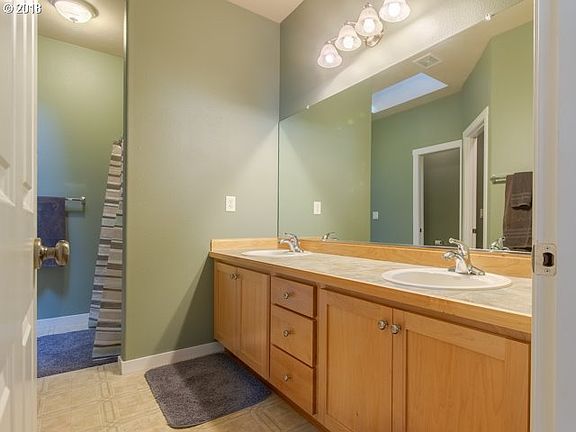 Expansive open floor plan w/ high ceilings & light-filled rooms. Spacious updated kitchen w/eat-in island & pantry. Master bedroom en suite w/ walk-in closet, double vanity, soaking tub, & skylight. Maple hardwood floors, large bedrooms, ample storage, central A/C, & oversized tandem garage. Covered balcony surrounded by mature native landscaping. Central location close to public transit, US-26, walking trails, restaurants, & shopping.