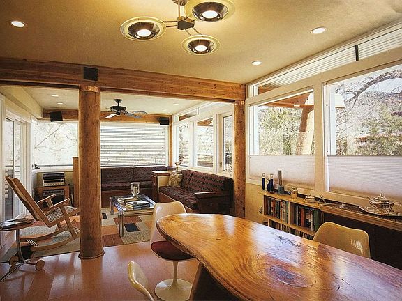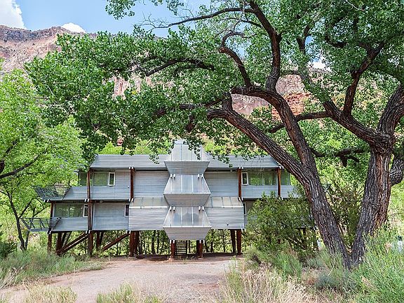 The Architect Bart Prince came to Jemez Springs...and this is what he created!! Strikingly different, radically original and custom designed to the amazing and beautiful RIVERFRONT setting! Settled right up against the river, nestled into the huge cottonwood trees on almost 1.5 acres that span both sides of the Jemez River! Designed to be practically maintenance free...this one is a perfect 2nd home get away! Easy, well arranged kitchen with large pantry is open to dining and living, with several sliders opening those incredible decks! Office space if you need it...could be game room for the kids if not! Spacious bedrooms ALL have their own sliders to those decks so you can doze off with the sound of the river taking your cares away! The city is out of sight and out of mind! Come on up!!