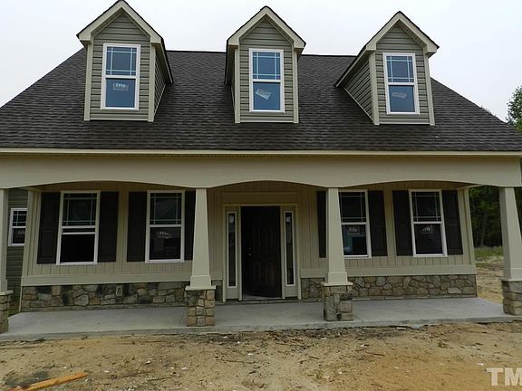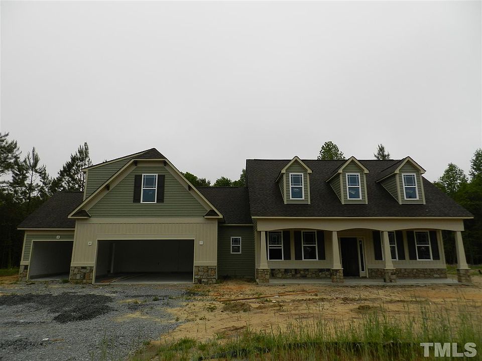 Beautiful 1 1/2 story open, split bedroom floor plan in quiet new neighborhood in Johnston County! This home features a rocking chair front porch, kitchen w/ss appliances, granite counters &bar open to a spacious family room w/gas log fireplace, master suite w/huge wic, dual vanities w/granite & garden tub, two additional bedrooms w/full bath downstairs, large bedroom & bonus w/full bath upstairs, large covered porch in rear overlooking private back yard & three car garage for additional storage! MUST SEE