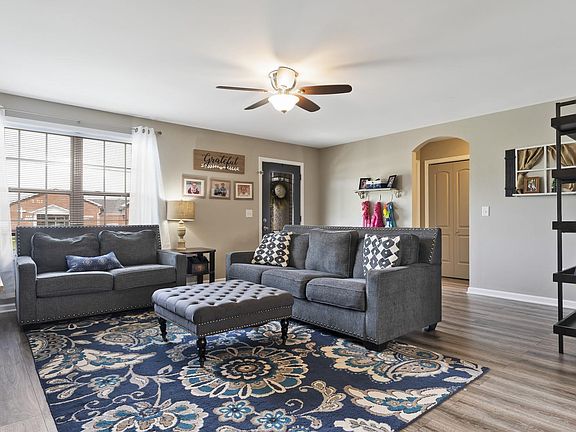 This home has all of the upgrades you have been looking for! Granite Counter tops, tile flooring, double vanity, walk in closet, shiplap walls, fully fenced in back yard, and more! This newer construction homes backs up to a bean field, so no backyard neighbors. Playset stays with the property.