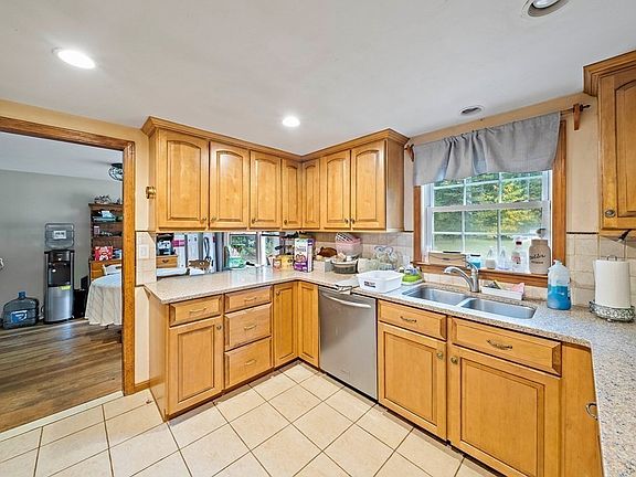 Adorable ranch style home with over 2 acres of land and a 2 car garage set back behind the tree line, a quaint trickling brook, and over a newly constructed bridge. Updated kitchen with plenty of cabinets, granite counters and stainless appliances opens to a spacious dining room with a bay window looking out to the spacious and private backyard. The living room is a cozy space to enjoy the winter w/a wood burning stove, another large picture window and hardwood floors. Down the hardwood hallway is the full bathroom, main bedroom, 2nd bedroom and the 3rd bedroom that is perfect for an office. All of the bedrooms have hardwood floors and a closet. The basement is really large and would make a great additional finished space! Laundry hook-ups, and new boiler/oil tank and a walk-out door make this great additional space ready for whatever you may need. Septic engineering is complete and approved. Seller will install prior to closing.