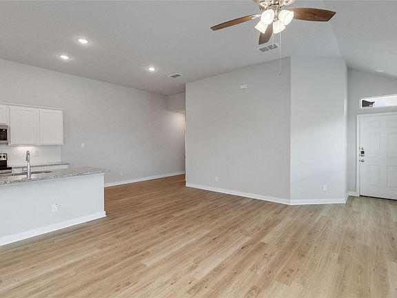 The three bed-two bath home is just under 1500 sf. With the 11' ceilings and open space the duplex feels much larger. Excellent kitchen appliances to include a dishwasher, microwave, flat top stove, and double door refrigerator with water and ice cube dispenser. Enjoy a very large white granite island and sleek white cabinets and a proper panty with solid shelving, not wire racks. Off the garage you walk into the family favorite drop zone. The two secondary bedrooms and full bath are located on one-side and enjoy the privacy of the incredible primary sweet in the back of the home. The ensuite is a dream. Deep sinks in the vanity with ample cabinets in the vanity and in the water closest above the commode. You will fall in love with the extraordinary size of the walk in closet, the stand alone shower also adds to the beauty and elegance of the primary space. The builder maximizes every inch of space with added storage throughout. The back yard is also spacious. In the evening enjoy the gorgeous view of the downtown Austin lights. The neighborhood is only about 15 mins to Austin headed North on 35, or head South and find Kyle near by, San Marcos is 20-25 mins and be in New Braunfels in less than thirty minutes. This community is exquisite so schedule a visit today and don't miss out while we still have units available.