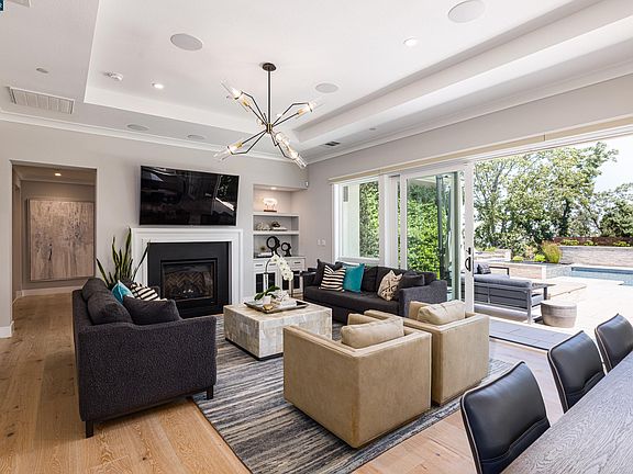 Offering privacy, perfection, & the finest in California indoor-outdoor living, this custom retreat is infused with everything required to create the ultimate lifestyle. With an open and light-drenched floor plan, this beauty enjoys designer-appointed interiors including tray ceilings, large chefs’ kitchen with oversized island open to the dining area and great room, opulent primary suite, & spacious primary bath. Each secondary bedroom has access to an en-suite bath. Understated from the front, this custom beauty spares no attention to detail. The luxurious resort-like backyard oasis, accessed from the main living area, creates a fabulous retreat set against the beautiful backdrop of endless panoramic views. The custom geometric swimming pool accented by a modern architectural wall, waterfall, & spa provides ambiance and tranquility. Dine in the luxury of the outdoor pavilion w/recessed ceiling heaters, gas fireplace, & cooking station or warm up by the large gas firepit. Watch multiple fireworks shows from the upper terrace or enjoy the turf area for fun & games. This property is a breathtaking retreat and a captivating place to entertain. Just minutes to both Walnut Creek & Lafayette’s shops & restaurants, top-rated schools, transportation, & trails.