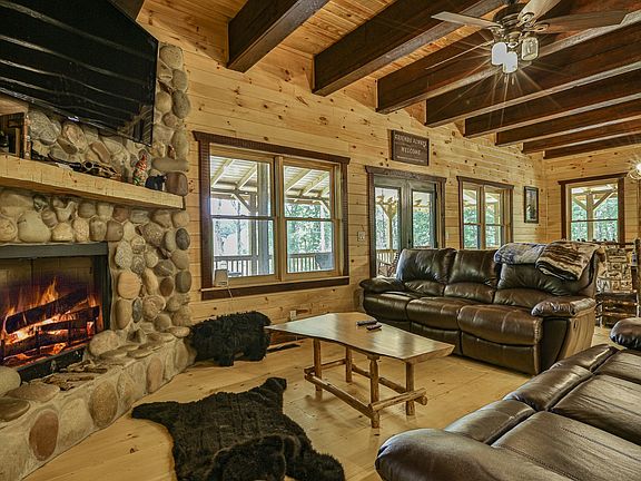 Private Sanctuary sitting on 10 acres and bordering over 1,284 Ft of USFS, walking distance to Toccoa River & Noontootla Creek! Almost new cabin with Four Levels and room for all - 4 Bedrooms, 3.5 Baths, Gracious Great Room with space to gather as well as wrap around porches with outdoor fireplace. Finished Terrace Level for gaming or hanging. When evening comes, meet at the Fire Pit for a drink and some conversation. This one has it all. Hunting, Fishing, Hiking, Biking, or Nothing at all if that's your preference!