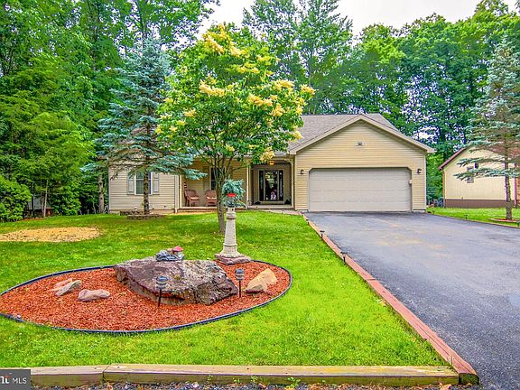 Welcome Home to 224 Shingle Mill Drive, This wonderful home features a highly sought after level lot in a private gated lake community. This 14 year old well maintained home is tight and dry. Pride is abundant in this home with several mechanical updates in 2021. Three nice size bedrooms and two full baths make up for a large airy feel and great one level ranch living. The Vaulted living room is spacious and great for entertaining or relaxing. A oversized kitchen offers plenty of counter space for family style cooking and large groups. Spill out of kitchen to open concept modern dining room . In the warmer months open the slider or take the meal out on the deck. House has a spacious back yard. with nice planting and mature landscaping. The recessed front door and covered front porch offers a cooling effect in summer months for the foyer and is a nice place to relax in the shade and visit with neighbors. The basement could easily be finished with very high ceilings and a wide stair case down with a landing to fit large items. If finished it would offer a additional 900 Sqf of living space. The community the home is in is called Beach Mountain lakes, it features a large lake, waterside restaurant bar, boating, boat docks and launch, club house, community tennis courts water side , pool, playgrounds, guard shack with security and gate, and many other wonderful features. This needs nothing home is ready for a new owner, as a primary residence or a escape to get away to the water for weekends and vacations.