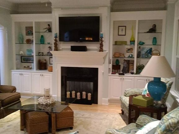 - Great Room: Molding, Entertainment Center, Bookcase, Floors-Hardwood, Ceilings-Box, Ceilings-High (over 9 Ft), Ceiling Fan, Recessed Lights