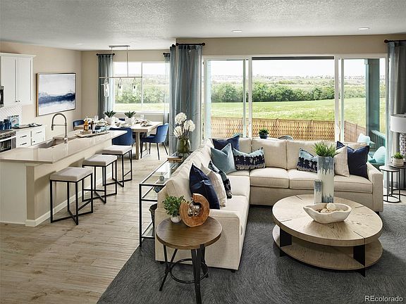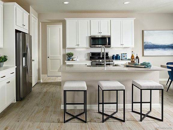 furniture and décor is included!) Check out the virtual tour! The stylish kitchen includes white cabinets with quartz countertops, a farmhouse style sink and under cabinets lighting. The timeless look is further enhanced by stainless Whirlpool appliances, including a 5-burnner gas range, microwave, dishwasher and refrigerator. Center-meet sliding glass doors off the great room provide a seamless flow to the covered outdoor living area and private yard. Other distinguished features include horizontal stair railing, wood-look porcelain tile throughout the main level, modern cosmo style fireplace, stainless steel bath fixtures, decorative hanging light fixtures in the master bedroom and entry. A spacious primary bedroom suite includes a large walk-in shower and ample closet space. Plus, a full finished basement with a rec room, bedroom and bathroom, professionally landscaped back yard, home technology package and washer/dryer. Home is fully furnished with a modern interior design style. All furniture, décor, window treatments, art, and TV's are included. Alarm system and built-in audio speakers include the pre-wire only. Also, enjoy all the perks of living in Terrain, including Dog Bone Park, Terrain Swim Club, Ravenwood Pool and Park, plus many other community activities. Annual taxes have been estimated at approx. 1% of the purchase price.