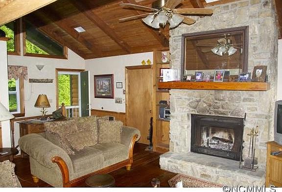 Great mountain get away in a gated community. Beautiful cabin, yr round views. The Living rm., Kitchen & bedrooms have yr round view & access to one of the two large covered porches. A smaller deck on back for grilling\firewood storage. Hot tub on porch just outside master. Wood fireplace in living rm. and gas logs in master. Bathrooms have been remodeled. Full basement for workshop or storage. Includes additional parcels.