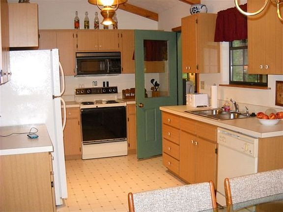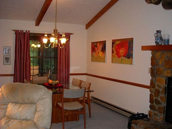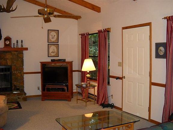 Wonderful home in Swiss Pine Lake community. Vaulted ceilings in the open living area w/stone fireplace; each bedroom has its own private bath; a large bonus room with plenty of windows to enjoy the outdoors view...great for game room and/or additional guest. The attached one car garage is large enough for a work bench & storage. Present owner has added 2.5 ton Heat Pump w/Air. This home is one that can be adapted to suit various styles & needs. Wooded lot offers privacy but one can clear more if one chooses. EXTRA BONUS!!! FREE!!! ALL furniture, linens, dishes, etc. at closing!>Lake ACCESS>