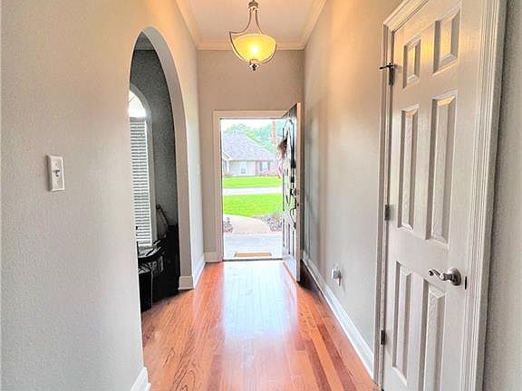 Talk about curb appeal!! Check out this immaculate 4 bed, 2 bath home situated on over half an acre in a well established subdivision. The pristinely manicured yard is breathtaking as you pull into the large 2 car garage. Step inside this impressive living space created by a beautifully maintained interior, and stunning architectural arches throughout. This home boasts a split floor plan with an open eat-in kitchen and features stainless steel appliances, cherry cabinets, walk-in pantry, as well as quartz countertops that are sure to impress. The living area is lofty and inviting with towering tray ceilings to include a cozy fireplace. The primary suite is spacious with a private bathroom outfitted with a walk-in shower, a freestanding garden tub, and a massive walk through closet. This home offers unique built in cabinets and ample storage. Enjoy the lush backyard with gorgeous rose bushes along the patio--complete with a privacy fence. Don’t miss out on the chance to own this incredible home!