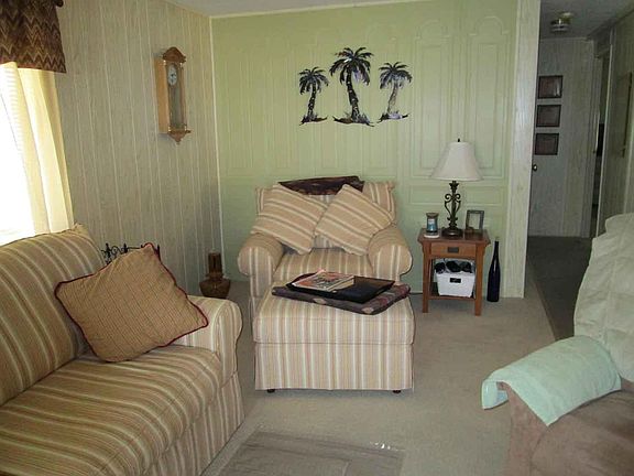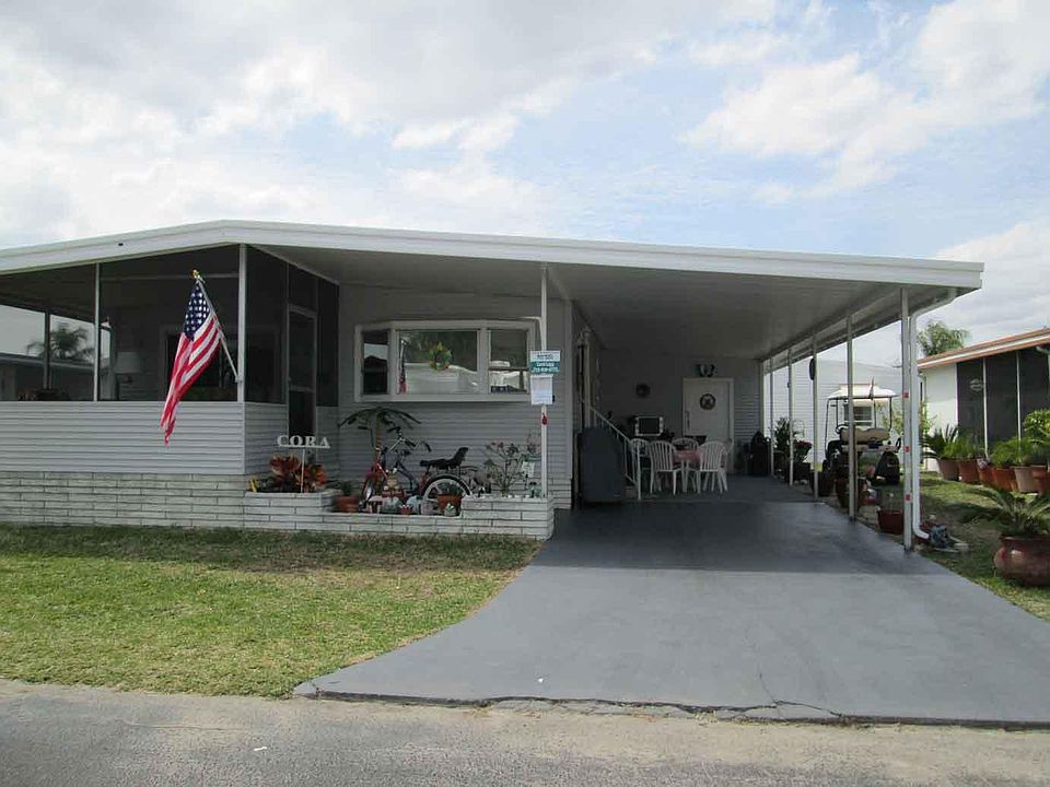 New lower price! This home offers a lot of bang for your buck! Its a great value and one not to be missed. Beautiful two bedroom/two bath home features a kitchen a chef would enjoy complete with lots of cabinet and counter space and attractive laminate flooring. Enjoy the Florida breezes from the screened in porch thats located off the spacious living room that includes a flat screen TV. Outside laundry shed complete with washer/dryer. Upgraded vinyl siding and newly painted carport. This home has been well maintained! Purchase only the home and lot rent is $705 monthly or purchase the share for $57,750 and monthly fee is only $255. Monthly fee includes trash removal, recycling, water/sewer, lawn mowing and edging. Orange Harbor is an over age 55 resident owned community located close to shopping, restaurants and beaches. This home is a must see!
