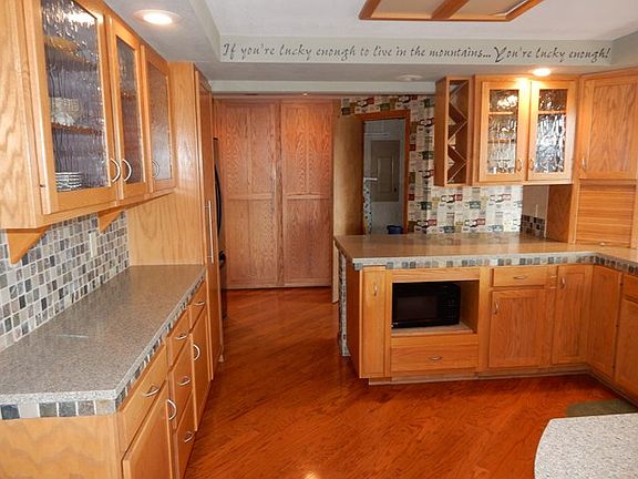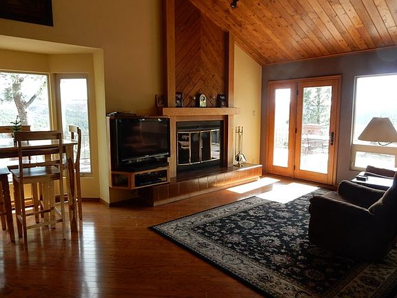 YOU'LL COME FOR THE VIEWS & MAY NEVER WANT TO LEAVE THIS TASTEFULLY REMODELED MOUNTAIN HOME KNOWN AS EAGLE'S ROOST. FROM THE WARMTH & RICHNESS OF HARDWOOD FLOORS, TO THE SPACIOUS FEELING OF VAULTED WOOD CEILINGS, YOU'LL BE IMPRESSED BY THE ATTENTION TO FINE DETAILING. ENJOY TWO LIVING AREAS PLUS KITCHEN THAT FEATURES QUARTZ COUNTER TOPS & BEAUTIFUL CABINETRY. OUTDOOR ENTERTAINING IS A DELIGHT ON EXPANSIVE TIMBERTECH DECKS W/ 180 DEGREE VIEWS. MASTER SUITE HAS PRIVATE LIBRARY AREA PLUS A HOME OFFICE THAT HAS SPECTACULAR VIEWS. AFTER A DAY ENJOYING MOUNTAIN RESORT ACTIVITIES, LUXURIATE IN YOUR OWN PRIVATE INDOOR SPA. RECENT UPDATES INCLUDE STUCCO EXTERIOR, NEWER WINDOWS, & PAVED DRIVEWAY.