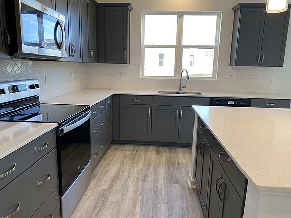 Price Reduced on this fantastic 1788 SF 3 bedrm, 2.5 ba, open floor plan. Thoughtfully planned w/ interior designer selections throughout-9' ceilings, luxury vinyl plank floors, designer lighting + plumbing fixtures. Ideal chef's kitchen: large island facing the family rm, 3 walls of soft close, grey cabs w/ crown molding, deep drawers, yards of quartz countertops, tile backsplash, WIP, sink window overlooking backyard. You'll instantly feel comforted by the graciously sized family, dining and bedrooms. Dream bathrooms w/ tile, quartz, dual sink vanities. Primary bedrm suite w/ 2 WICs, shower w/ bench + private water closet! Relax outdoors on your covered front porch or the back patio. Energy efficient and solar ready.[Metcalf] $20,000 use as you choose with Vision Lending; close on or before 4/26/24