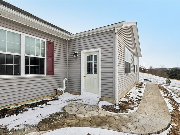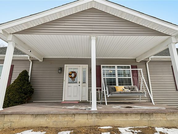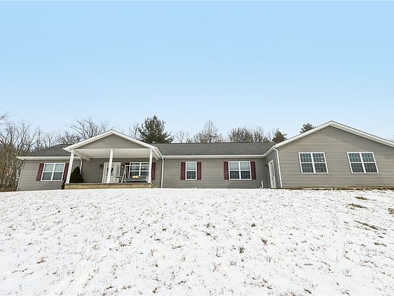 This stunning ranch is awaiting it's new owners! This 3 bedroom, 2.5 bath home has plenty of space for your family! A beautiful stamped concrete walkway leads you to the front door. Enter into spacious, open living! The kitchen boasts an abundance of storage in the oak cabinets and center island. You will love the large stainless sink, recess lighting, and the amount of counter space. The inviting living room features a wood burning fireplace flanked by beautiful built-ins. The primary bedroom has a nice sized closet and a 4 piece en-suite with a dual vanity and soaking tub. Main floor laundry! The clean, dry basement has an additional room and many possibilities. There is a walk-up attic offering the opportunity to finish for additional living space. Attached 3 car garage and a detached 1 car garage. Relax on the private, covered composite rear deck. New fencing and asphalt driveway! Generac Generator! Country living with gorgeous views yet close to many amenities and major highways!