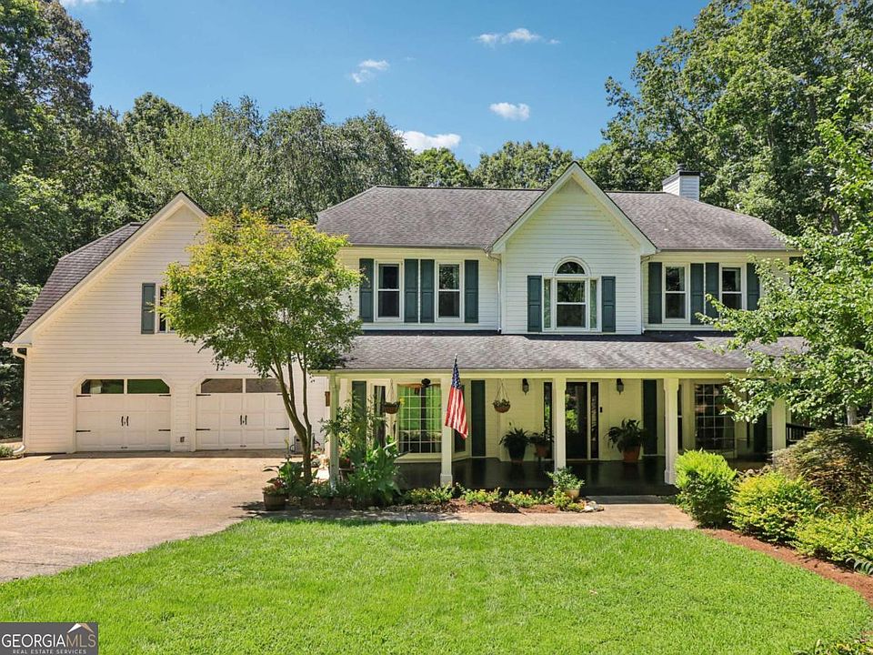 Renovated Home on 2 Acres with Southern Charm! This beautifully updated home sits on a 2-acre lot and welcomes you with a huge Southern-style front porch with 2 ceiling fans. Inside, the formal dining room is to the left and a formal living room/office to the right. The bright, open family room features a cozy fireplace and built-ins, flowing into the modern kitchen with granite counters, backsplash, island with seating, stainless steel appliances, built-in desk, and sunny breakfast room. An oversized screened porch with walls of windows and skylights offers year-round enjoyment. Upstairs, retreat to the oversized primary suite with a separate sitting area-ideal for a reading nook, media space, office, or nursery. The en-suite bath includes dual vanities, whirlpool tub, and glass shower. Two secondary bedrooms share a full bath, while the fourth oversized bedroom has built-ins and two lofts. The fenced backyard is a dream with patio, fire pit, 2 raised deck, and wooded areas beyond the fence. Updates include rebuilt decks, new outlets and switches, updated light fixtures and fans, freshly stained front porch with outdoor fan, new front door with sidelights, hot water heater, garbage disposal, bathroom exhaust fans, stove, gate opener (with warranty), over 500 feet of 3-board, 4-foot-tall wooden fencing with 2"x4" welded wire and two 6-foot entry gates with remote gate opener at driveway entry and one 6-foot entry gate in the backyard. All of this plus no HOA! Book your tour today!