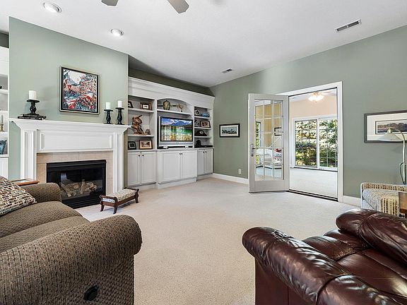 This beautiful south-facing home in West Lafayette, built by Steve Conners, is situated in the prestigious Winding Creek golf club community. It boasts a spacious entry foyer with high ceilings, plant shelves, and a tile floor, leading to an open-concept kitchen, dining, and living area. There is an office that is situated right next to the foyer. The heated and air-conditioned sunporch features Pella windows and doors. The family room is highlighted by a fireplace flanked by 24 feet of custom-made Wallace cabinets. The master suite, located at the rear of the house, offers privacy with its en-suite bath, while two additional bedrooms and a bath are at the front. The laundry room, designed with convenience in mind, includes a utility sink, windows, a folding table, and a mudroom cubicle, and is adjacent to the three-car garage. The kitchen features a peninsula with seating, a desk area, and a beverage fridge. Outdoor amenities include a swing on the porch, a gas grill, and a concrete patio surrounded by beautiful Krintz landscaping. Additional features include a lawn sprinkler system, a new furnace installed in November 2023, and a crawl space access off the garage patio. Some furnishings and appliances are available for purchase separately. Occupancy is available at the end of July.