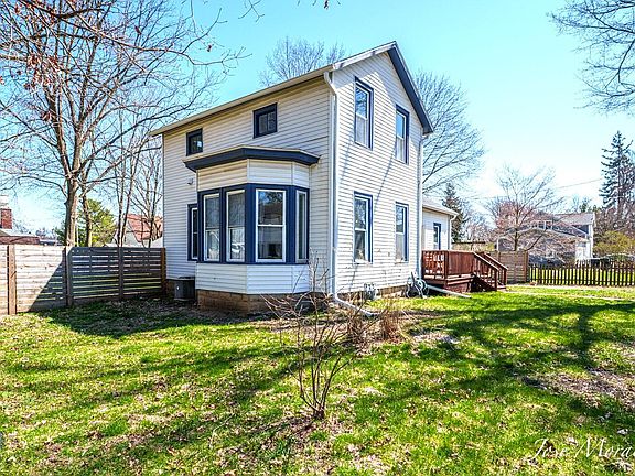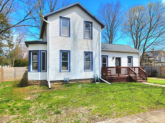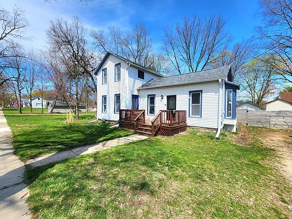 Welcome Home! This enchanting home bordering the Plainwell Historic district dazzles with all of the charm of a traditional farmhouse combined with the modern design updates you desire. Spend your mornings drinking coffee on your lovely front porch or back deck which overlooks a fenced back yard. Inside, the main level includes an attractive bright floor plan with a stylish kitchen perfect for entertaining. On this level you will also find a bedroom with bay window seat, sunroom with new washer and dryer, and an oversized chic full bath. Heading upstairs you will find 2 more inviting and spacious bedrooms. In the last few years, updates include new roof, fence, and stairs. It has also been freshly painted in a modern color scheme. Don't miss out on this beautiful home. Schedule your showing today! Possession at closing.