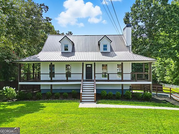 Welcome to this beautifully remodeled Cape Cod home, perfectly situated on nearly 2 serene acres of usable land. With its timeless wrap-around porch and classic metal roof, this home offers incredible curb appeal. Inside, you'll find a spacious 4-bedroom, 3.5 bathroom layout. The heart of the home is the stunning new kitchen, featuring white cabinets, granite countertops, stainless steel appliances, and brand-new tile floors. Enjoy a peaceful meal in the eat-in kitchen, which looks out onto the fully fenced, (+-)one-acre backyard. Step outside onto the oversized deck, an ideal space for entertaining and enjoying the outdoors. The main level offers a cozy family room with a fireplace and a private primary suite with its own porch entrance. The en-suite bathroom is a true retreat, complete with a whirlpool tub, sep shower, and a new double vanity with granite countertops, all complemented by a walk-in closet. The upstairs features two additional spacious bedrooms with a full hall bath. Downstairs, the finished basement provides a flexible den, gameroom/craftroom, a fourth bedroom, and a full bath with a shower. Fresh new carpet, kitchen tile, and LVP flooring are throughout the home. This private cul-de-sac lot is a peaceful retreat with a secure, fenced backyard offering the perfect blend of space and privacy.