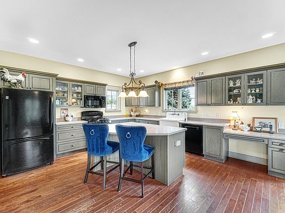 Country charm meets modern comfort at this 28-acre homestead. Charming and whimsical 3 bedroom 3.5 bath home w/walk-out basement, beautiful pastures, six-stall horse barn, storage barn & pasture shelter. No expense was spared to bring the beauty of the land together w/the home. Truly efficient & beautifully designed from the home to the barns. Each room ensures picturesque views of the lot & an abundance of natural light flowing throughout. Beautiful hardwood floors throughout. Country kitchen boasts custom cabinetry, farmhouse sink, & large island w/ breakfast bar. Dining room & living room boast a double-sided fireplace. The main level master features walls lined w/ windows, 2 walk-in closets & ensuite bath. The generously sized 2nd and 3rd bedrooms are on the upper level. The walk-out basement features rec room, woodburning stove, kitchenette, breakfast bar & additional bathroom. All 6 stalls in horse barn feature dutch doors and weather protected by porch on both sides.