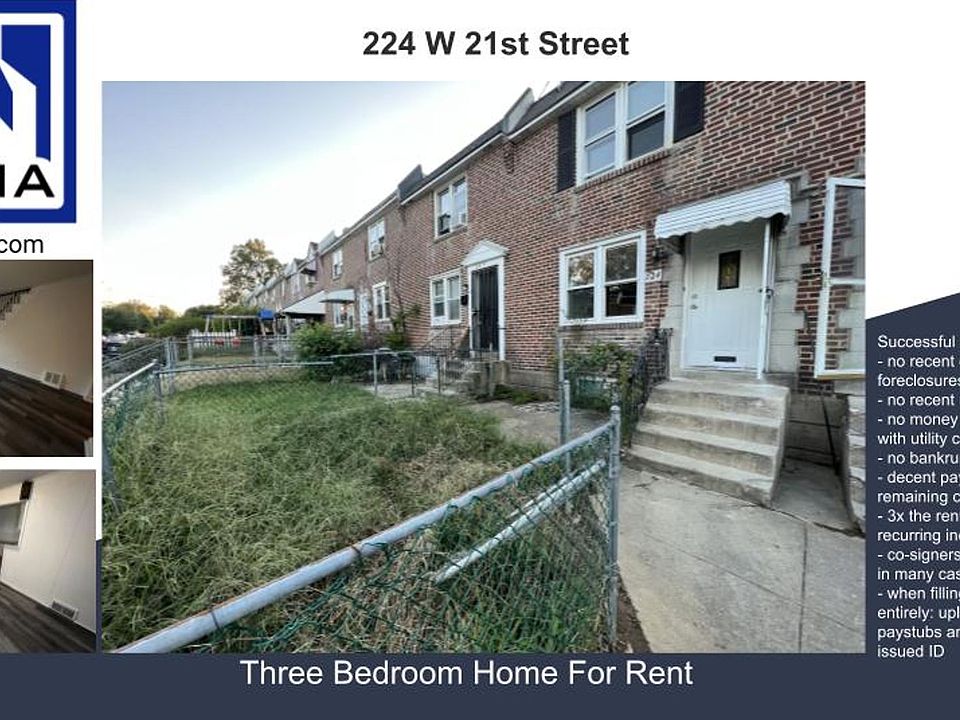 This 1152 square foot single family home has 3 bedrooms and 1.5 bathrooms. This home is located at 224 W 21st St, Chester, PA 19013.