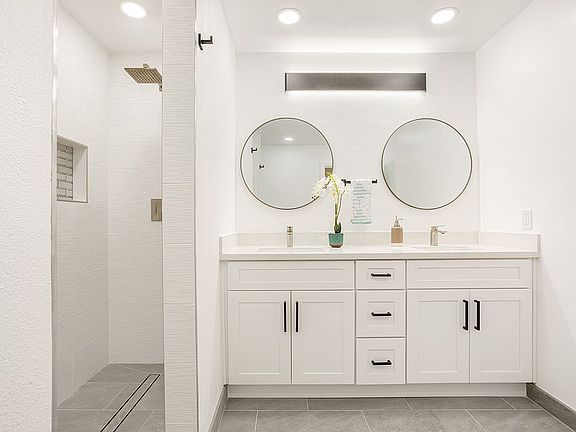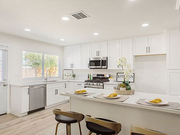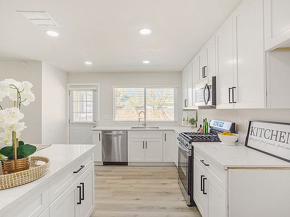 ***THIS HOME IS GORGEOUS*** FULL REMODEL in 2023, Quartz Counter Tops, Shaker Cabinets - solid wood with dove tail and soft close! Full Waterproof Luxury Vinyl Plank Floors, NEW Coleman Central AC, ****WET BATH WITH FRENCH DRAIN THAT YOU HAVE TO SEE TO APPRECIATE!!**** The Primary bedroom with attached bath is generously sized and has a nice walk in closet. LED Recessed lights in all rooms, new paint inside and out, new doors, handles, faucets, KES Bathroom Hardware. Both bathrooms have gorgeous DragonFly tiles and are fully remodeled as well. Home also was 2 Inch blinds, Dual Pane windows, a kitchen island, NEW Stainless appliances, RV Parking and much more! This Home will not last!