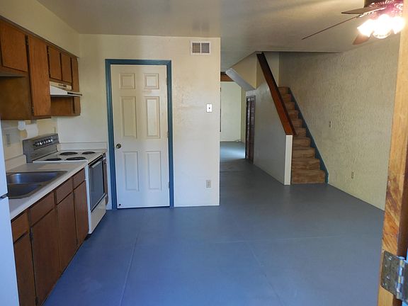 Two-story duplexLarge kitchenSaguaro rib ceilingBright and sunnyDining roomWashing machine hook-upVaulted ceilings