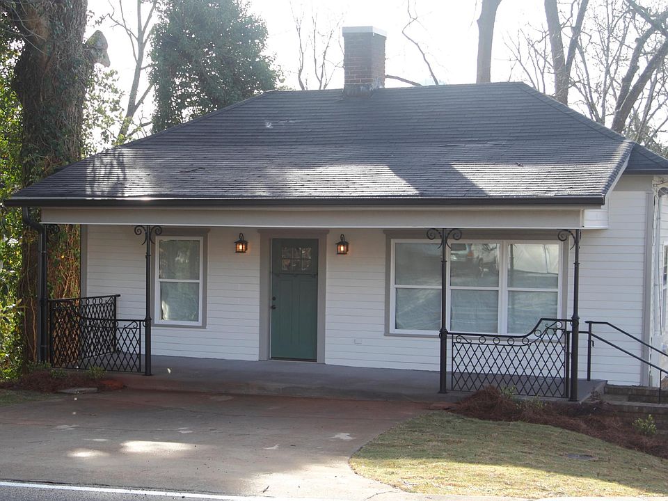 Buford City School district. Charming 2 bedroom 2 bath historic bungalow in downtown Buford. Walking distance to main street shops, restaurants and entertainment. Renovated to save the charm and character of the home with original hardwood floors throughout. Spacious kitchen with custom cabinets and granite counter tops with deep stainless steel sink and chef faucet. Private backyard deck and storage shed in the back. Additional parking and lots of storage beneath the house. Two mature pecan trees on the property.Custom plantation shudders in living room and main bedroom along with original (decorative only) fireplaces. Lawn care included. No smoking allowed. Deposit and first month's rent due at signing of lease agreement. Tenant responsible for all utilities. No evictions. Rental application and background check is required. Income 3Xrent credit score at least 600