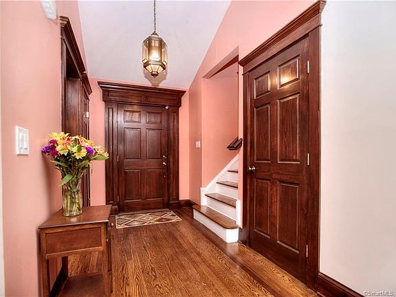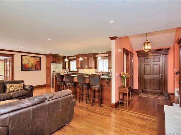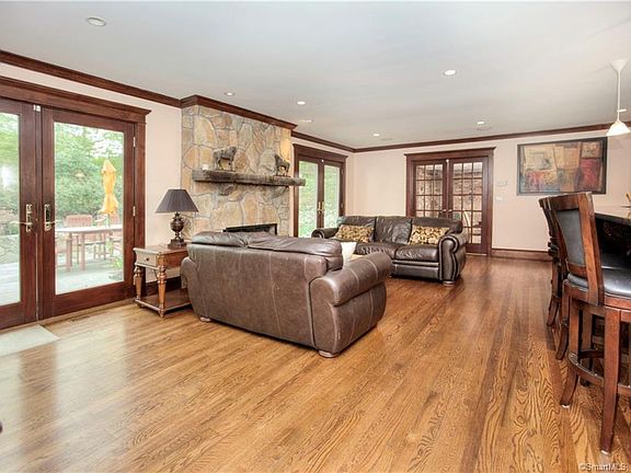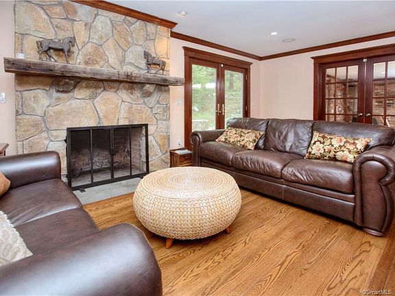 Private 1 acre Cranbury living! Home features updated kitchen with open floor plan, Large separate dining room with wood burning stove, Master BR W/En Suite, Gleaming hardwood floors throughout, and Potential in-law space with separate entrance great for hosting AirBnB guests. Property also features an Indoor/Outdoor fireplace for relaxing evenings by the fire as well as an additional private patio for entertaining. Newer 300+/- Sqft exterior shed is also included with property. With close proximity to Cranbury Park, Restaurants, Shopping, Merritt Parkway, I95, and Public Transportation makes for a Great location.