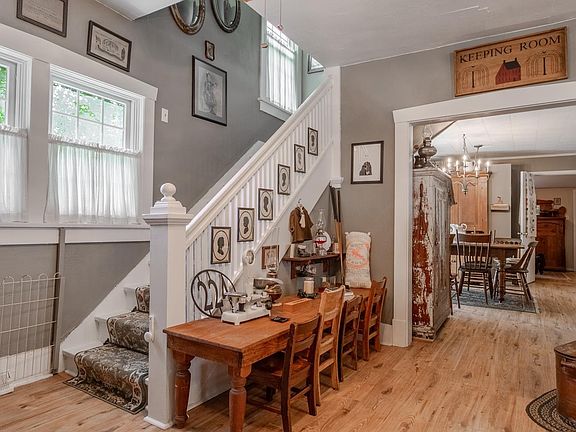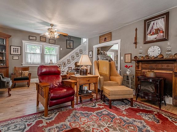 Nestled in a charming neighborhood, this stunning turn-of-the-century home seamlessly blends historic charm with modern amenities. Boasting over 1,800 square feet of living space, this beautifully preserved residence features three spacious bedrooms, an office and an enclosed front porch. The kitchen opens into the Formal Dining Room which lead out to a wonderful patio for relaxing or entertaining. The home includes a Beautiful 3/4 Bath and a 3/4 bath on the upper level complete with a classic clawfoot tub, adding a touch of vintage elegance. A heated breezeway connects the main house to an impressive 2 1/2 car garage, providing ample storage and convenience. This home is a true gem, offering a unique blend of historical character and contemporary comforts. There is on-demand hot water and furnace and central air are only 4 years old.