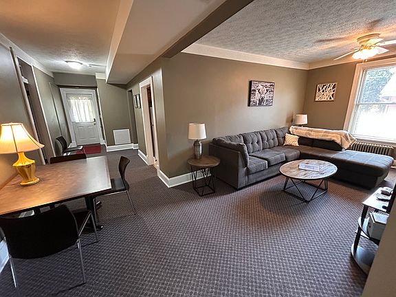 Boasting generous interiors in an open plan layout, this apartment is the perfect setting for a low maintenance lifestyle with walk-to-everywhere convenience. This well-presented home is in a great location, built to catch the summer breezes see the twinkle of Cumberland, Maryland lights at night. This apartment exudes an undeniably perfect blend of modern sophistication and character charm. With a neutral color palette throughout, the open plan living and dining effortlessly adjoin a modern, functional kitchen. This apartment is presented in good condition with nothing else needing to be done, except move in! To provide extra comfort, you'll find newly upgrade centralized air-conditioning and heating in each bedroom and the living room, which easily cools/heats the entire house. The bedroom closets will not disappoint even the most fashion-conscious person. - Within minutes from shops downtown and the bus, to make commuting a breeze - 6-minute drive to UPMC Western Maryland and a 10-minute walk to the C&O and GAP Trails (hiking and bicycling) - First bedroom with Queen size bed, closet, and ceiling fan - Second bedroom with two full-size beds and a closet - Third bedroom with Queen size bed and two closets - Comfortable living areas; deck and stunning outlook - Large modern kitchen with new appliances, microwave, coffee maker, dishwasher, and plenty of storage -In-unit new clothes washer and dryer - Ceiling fans throughout for summer comfort - Modern stylish bathroom with floor to ceiling tiles and Tub/Shower combo This apartment is a separate unit as part of a house occupied by another family. The unit has parking in the back with a separate walk up to the apartment entrance. The occupant must be able to walk up and down two flights of stairs to access the unit. NOTE: Smoking, vaping, or marijuana are not permitted in either the apartment or on the property. All adult occupants must be on the lease. ADDITIONAL FEES: $300 per month for each additional adult occupant; $100 per month local tax for leases of under four months. All utilities and Internet included, as well as one off-street parking space. Additional charge of $300 per month for additional adult occupants. All adult occupants must be on the lease. No pets (no exceptions), no smoking, no vaping, no marijuana use permitted. Rentals less than four months subject to monthly local tax of $100.